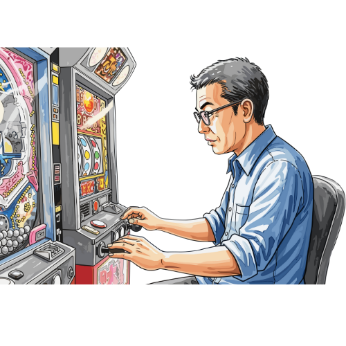 Visitors enjoy pachinko alongside others, adding a subtle social dimension to the experience.
